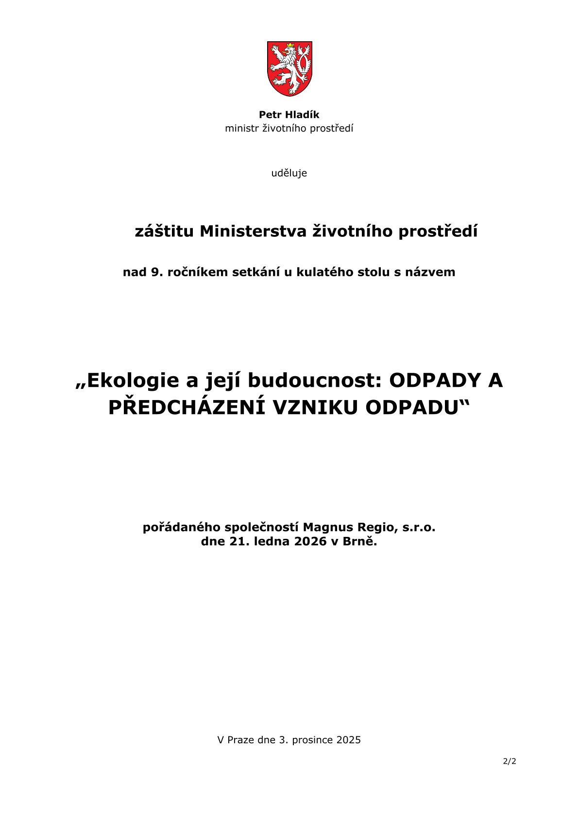 Srdečně Vás zveme na tradiční odborné setkání u kulatého stolu na téma Ekologie a její budoucnost. Setkání se uskuteční 21. ledna 2026 v Brně, v hotelu Avanti. Během programu se zaměříme na aktuální výzvy a příležitosti v oblasti ochrany životního prostředí, územního rozvoje a udržitelného fungování měst a obcí.