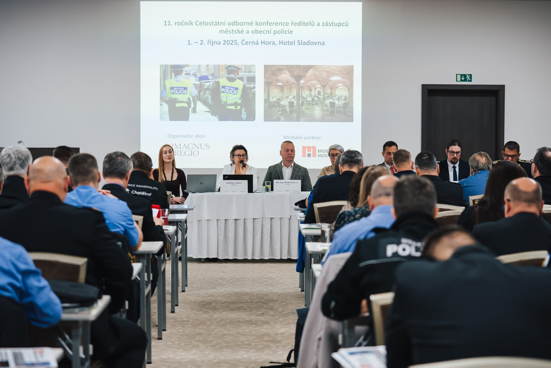 Černá hora/Brno, 1. a 2. října 2025 – Již pojedenácté se letos uskutečnila Celostátní odborná konference ředitelů a zástupců městských a obecních policií. Na dvoudenní akci měli strážníci možnost diskutovat o nejrůznějších tématech s odborníky z ministerstva vnitra, Svazu městských a obecních policií a odborných firem. Program byl rozdělen do čtyř aktuálních tematických bloků, které se věnovaly bezpečnosti ve městech, školských zařízeních, kybernetické bezpečnosti a její prevenci, a také současným trendům v personální politice z hlediska obecních policií. Akci pořádala společnost Magnus Regio v hotelu Sladovna v Černé hoře.