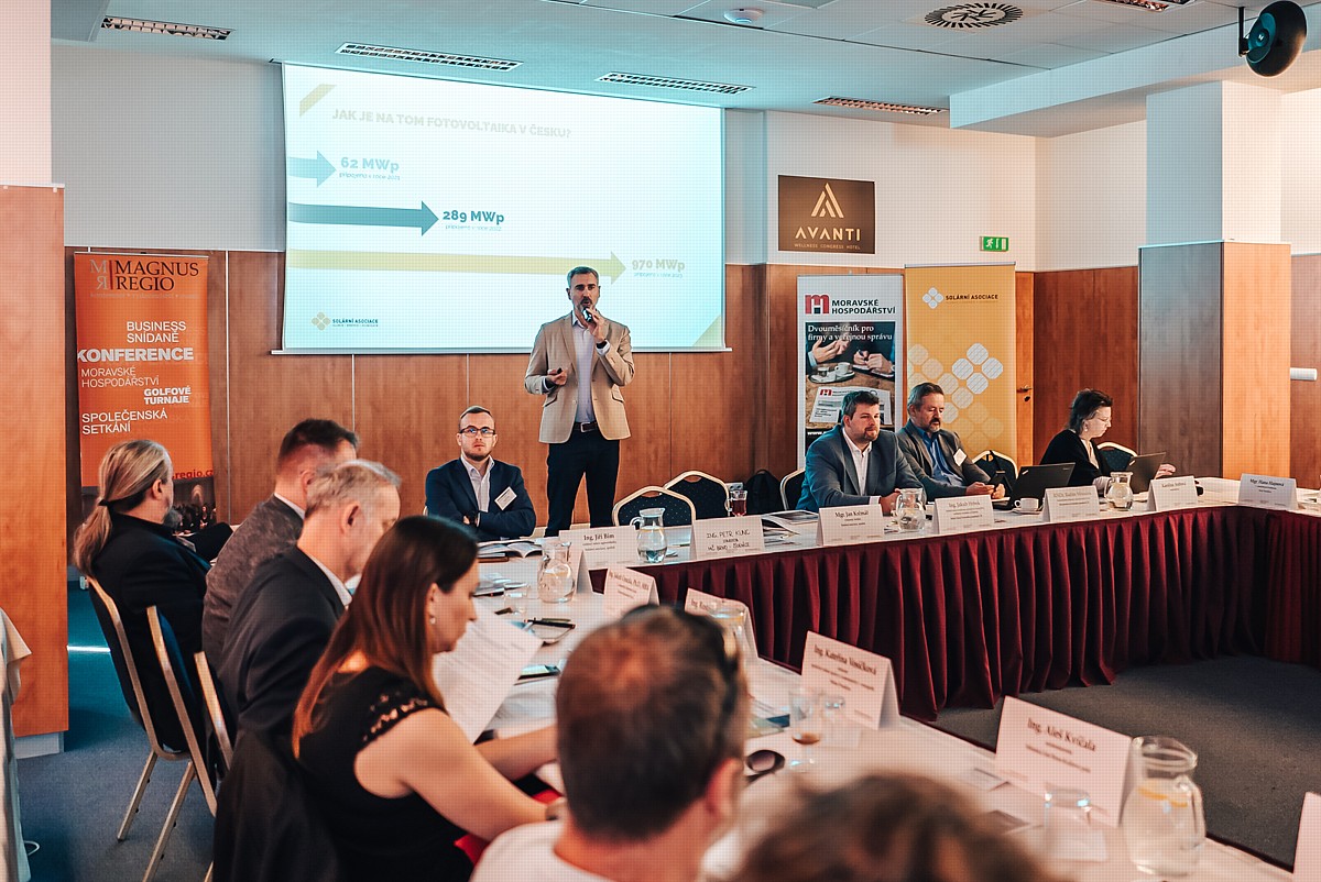 Hned v úvodu vystoupil Mgr. Jan Krčmář, výkonný ředitel Solární asociace, která byla generálním partnerem setkání. Zdůraznil, že obce jsou klíčovým partnerem při jakémkoliv rozvoji, ať už jde o infrastrukturu či právě energetiku. Právě proto je tak důležité, aby se obdobné akce konaly. Dále komentoval současnou situaci z hlediska budování nových zdrojů obnovitelné energie. „V Česku probíhá druhý solární boom. Na rozdíl od prvního se koná zatím především na střechách rodinných domů. Loni jsme postavili přibližně 80 tisíc nových zdrojů s celkovým výkonem 1 Gigawatt. Ve srovnání s předchozími lety jsou to velmi dobrá čísla, stále máme ale co dohánět. Pořád stavíme v přepočtu na obyvatele výrazně méně ve srovnání dalšími státy, třeba s Polskem,“ uvedl Jan Krčmář.